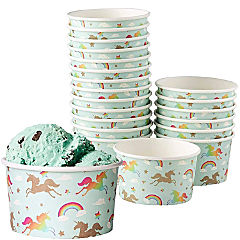 100-Count Rainbow Unicorn Disposable Paper Ice Cream Sundae Cups Yogurt Bowls 8 oz, Light Blue
