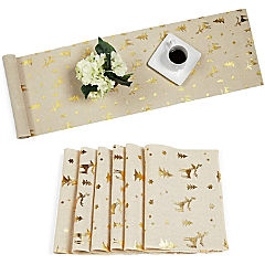Christmas Placemats with Table Runner (Gold Foil, 6 Pieces)