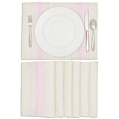 Set of 6 Woven Burlap Placemat for Dining Table, Patio, Pink & Beige Striped, 16.5 x 12.6 in
