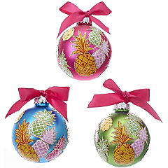 Kurt Adler Glass Pineapple Pattern Ball Christmas Tree Ornaments Box Set of 6