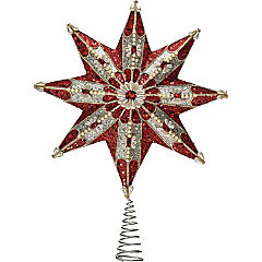 Kurt Adler 8-Point Ruby and Platinum Star Christmas Treetoper, Red Silver, 16.5 inches