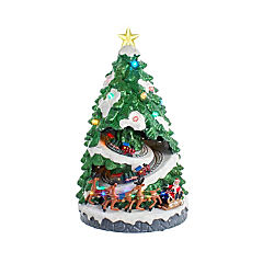 Kurt Adler Battery Operated Lighted Musical Christmas Tree with Moving Train, 15.7 Inches