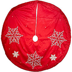 Kurt Adler Christmas Tree Skirt with Embroidered and Pleated Border, Red, 60in