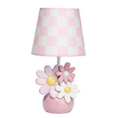 Lambs & Ivy Daisy Dreams Hand-Painted Pink Floral Lamp w/ Shade and LED Bulb