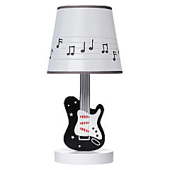 Lambs & Ivy Rock Star Guitar Lamp with White Musical Notes Shade & Bulb