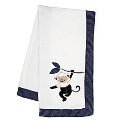 Lambs & Ivy Jungle Party White/Navy Monkey Soft Fleece Baby Blanket