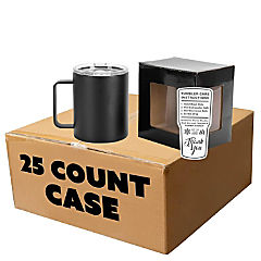 Makerflo 12 oz Black Powder Coated Camper Mug with Leak-Proof Clear Lid - Pack of 25, Ideal for Craft, Personalization (Laser Engraving, UV DTF, Epoxy, Vinyl)