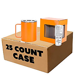 Makerflo 12 oz Orange Powder Coated Camper Mug with Leak-Proof Clear Lid - Pack of 25, Ideal for Craft, Personalization (Laser Engraving, UV DTF, Epoxy, Vinyl)