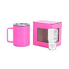 Makerflo 12 oz Pink Powder Coated Camper Mug with Leak-Proof Clear Lid - Pack of 1, Ideal for Craft, Personalization (Laser Engraving, UV DTF, Epoxy, Vinyl)