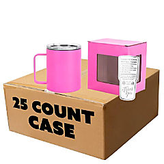Makerflo 12 oz Pink Powder Coated Camper Mug with Leak-Proof Clear Lid - Pack of 25, Ideal for Craft, Personalization (Laser Engraving, UV DTF, Epoxy, Vinyl)