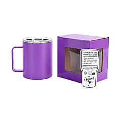 Makerflo 12 oz Purple Powder Coated Camper Mug with Leak-Proof Clear Lid - Pack of 25, Ideal for Craft, Personalization (Laser Engraving, UV DTF, Epoxy, Vinyl)