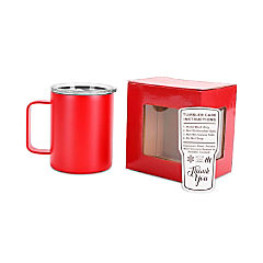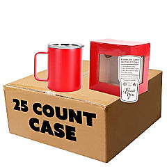 Makerflo 12 oz Red Powder Coated Camper Mug with Leak-Proof Clear Lid - Pack of 25, Ideal for Craft, Personalization (Laser Engraving, UV DTF, Epoxy, Vinyl)