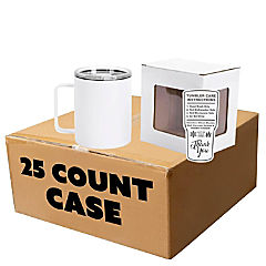 Makerflo 12 oz White Powder Coated Camper Mug with Leak-Proof Clear Lid - Pack of 25, Ideal for Craft, Personalization (Laser Engraving, UV DTF, Epoxy, Vinyl)