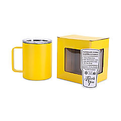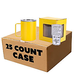 Makerflo 12 oz Yellow Powder Coated Camper Mug with Leak-Proof Clear Lid - Pack of 25, Ideal for Craft, Personalization (Laser Engraving, UV DTF, Epoxy, Vinyl)