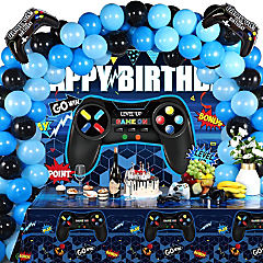 Video Game Birthday Party Set, Backdrop, Table Covers, Balloons & Gamer Foil Balloons for Party