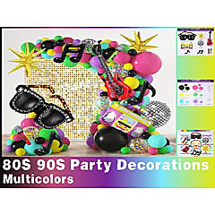 90S Party Decorations 90S Theme Backdrop Latex Balloons Back To The 90'S Tablecloth Party Tableware Set 90'S Paper Plates Napkins Knife Forks Flatware For Birt