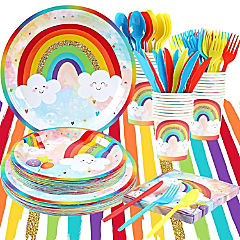 Rainbow Party Supplies, Happy Birthday Decorations For Girls & Boys -169Pcs Rainbow Party Tableware Set Include 9" And 7" Party Plates And Napkins Cups Utensil