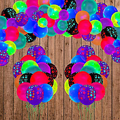UV Neon Balloons Kit with Black Light Reactive Balloons 106pcs for Glow-in-the-Dark Party Decor.