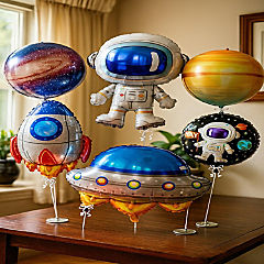 Mylar Space Balloon Set 6 Piece with Astronaut Design for Space-Themed Parties & "To the Moon" Birthday Decorations
