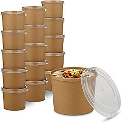 MT Products 8 oz Kraft Paper Soup Cups with Plastic Lids - Set 20 Cups and Lids