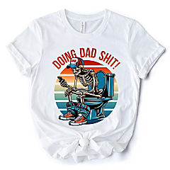 Doing Dad Stuff Skeleton T-Shirt, White Funny Retro Tee for Bold Fathers, Small