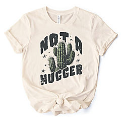 Not a Hugger T-Shirt With Cactus, Funny Retro Natural Tee for Sarcastic Girls, Medium
