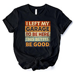 I Left My Garage to Be Here T-Shirt, Black Retro Tee for Funny Car Dads, 2XL