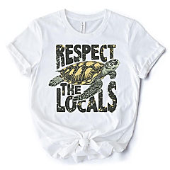 Respect the Locals Turtles T-Shirt, Retro Grunge White Tee for Ocean and Beach Lovers, Small