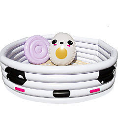 SCS Direct Inflatable Ramen Kiddie Pool - XL 67" Above-Ground Kawaii Noodle Children's Pool w Giant Backyard Swimming Float Accessories
