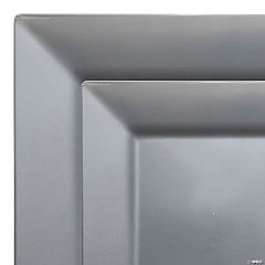 Silver Square Plastic Plates Dinnerware Value Set - 20 Dinner Plates + 20 Salad Plates