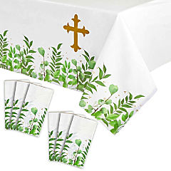 Sparkle and Bash 3 Pack Religious Baptism Tablecloth, First Communion Tablecloth for Church with Gold Cross, 54 x 108 in