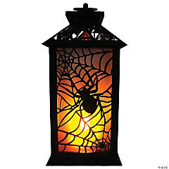 11.5" Flaming LED Plastic Lantern with Spider Halloween Decoration