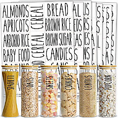 144 Pantry Organization Labels for Food Storage Containers, Preprinted Black All-Caps on Matte White Vinyl Stickers