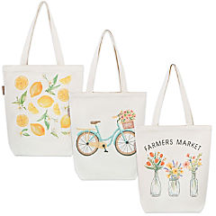 3-Pack Graphic Tote Bags, 15 x 5.5 x 16 Inches, Reusable Grocery Bags with Handles with 3 Designs, (Farmers Market)
