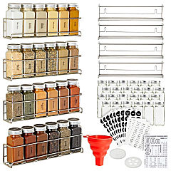 4 Stainless Steel Spice Racks Wall Mount Organizer with24 Empty 4oz Glass Jars, 269 Clear Seasoning Labels, 2 Styles