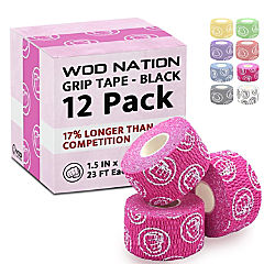Bulk 12-Pack Weightlifting Hook Grip Tape, Comfortable & Stretchy Athletic Thumb Tape for Exercise (23ft/Roll)- Pink