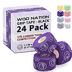 Bulk 24-Pack Weightlifting Hook Grip Tape, Comfortable & Stretchy Athletic Thumb Tape for Exercise (23ft/Roll)- Purple