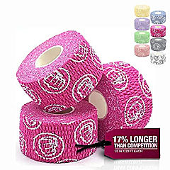 Bulk 3-Pack Weightlifting Hook Grip Tape, Comfortable & Stretchy Athletic Thumb Tape for Exercise (23ft Per Roll)- Pink