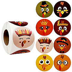 Wrapables 1.5 Inch Thanksgiving Sticker Roll, Autumn Holiday Stickers (500pcs), Turkey Face