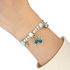 Wrapables Friendship Beaded Enamel Charm Bracelet, Blue Butterfly