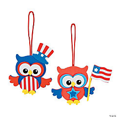 3 1/2" x 6" Patriotic Owl Ornament Foam Craft Kit - Makes 12