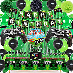 Video Game On Theme Birthday Set with Banner, Balloons, Cake Toppers, and Family Party Supplies
