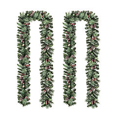 Glitzhome Set of 2 6FT Glittered Pinecones and Berries Christmas Garland With 50 Warm White Lights and Timer, Three Function