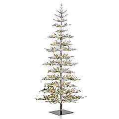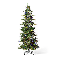 Glitzhome 9ft Deluxe Pre-Lit Flocked Slim Fir Artificial Christmas Tree with 650 Warm White Lights, 3 function