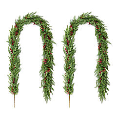 Glitzhome Set of 2 9ft Christmas Greenery PE Dripping Cedar  Garland with Red Berries