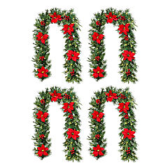 Glitzhome Set of 4 6ft Pre-Lit Greenery Pine Red Poinsettia and Berries Christmas Garland, with 50 Warm White Lights and Timer, Three Function