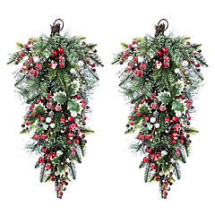 Glitzhome Set of 2 28"H Christmas Red Pomegranate Berry & Holy Leaf Teardrop