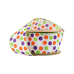 LaRibbons 2 1/2" Wired Ribbon - Multi-Colored Dots on White - 10 Yard Roll
