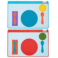 Montessori Placemats for Toddlers - 2 Pack Silicone Table Setting Placemats for Kids with Non-Slip Back, 17 x 11 In