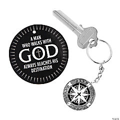 3 1/4" Religious Father’s Day Compass Charm Keychains with Card - 12 Pc.